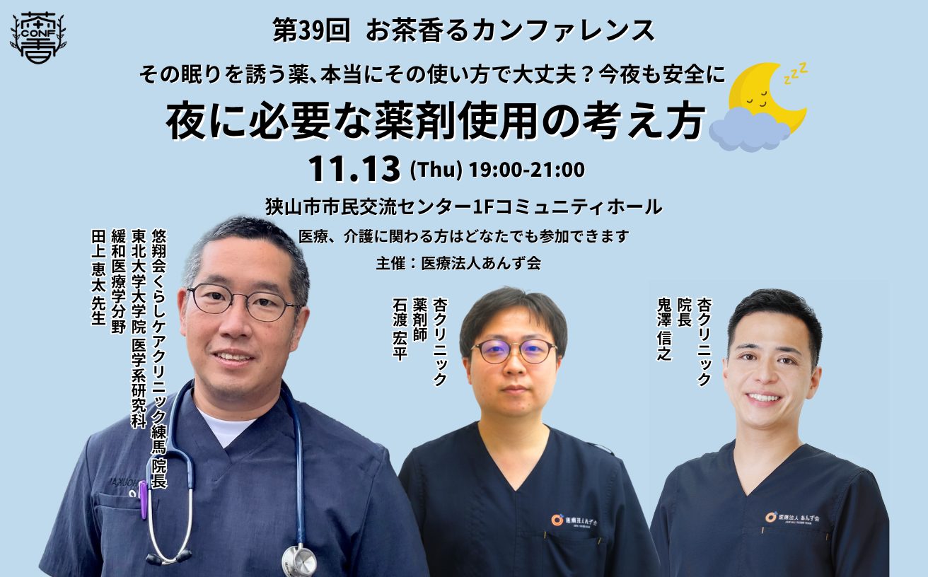 地域向け勉強会「その眠りを誘う薬、本当にその使い方で大丈夫?今夜も安全に☽ 夜に必要な薬剤使用の考え方(第39回お茶香るカンファレンス)」のお知らせ